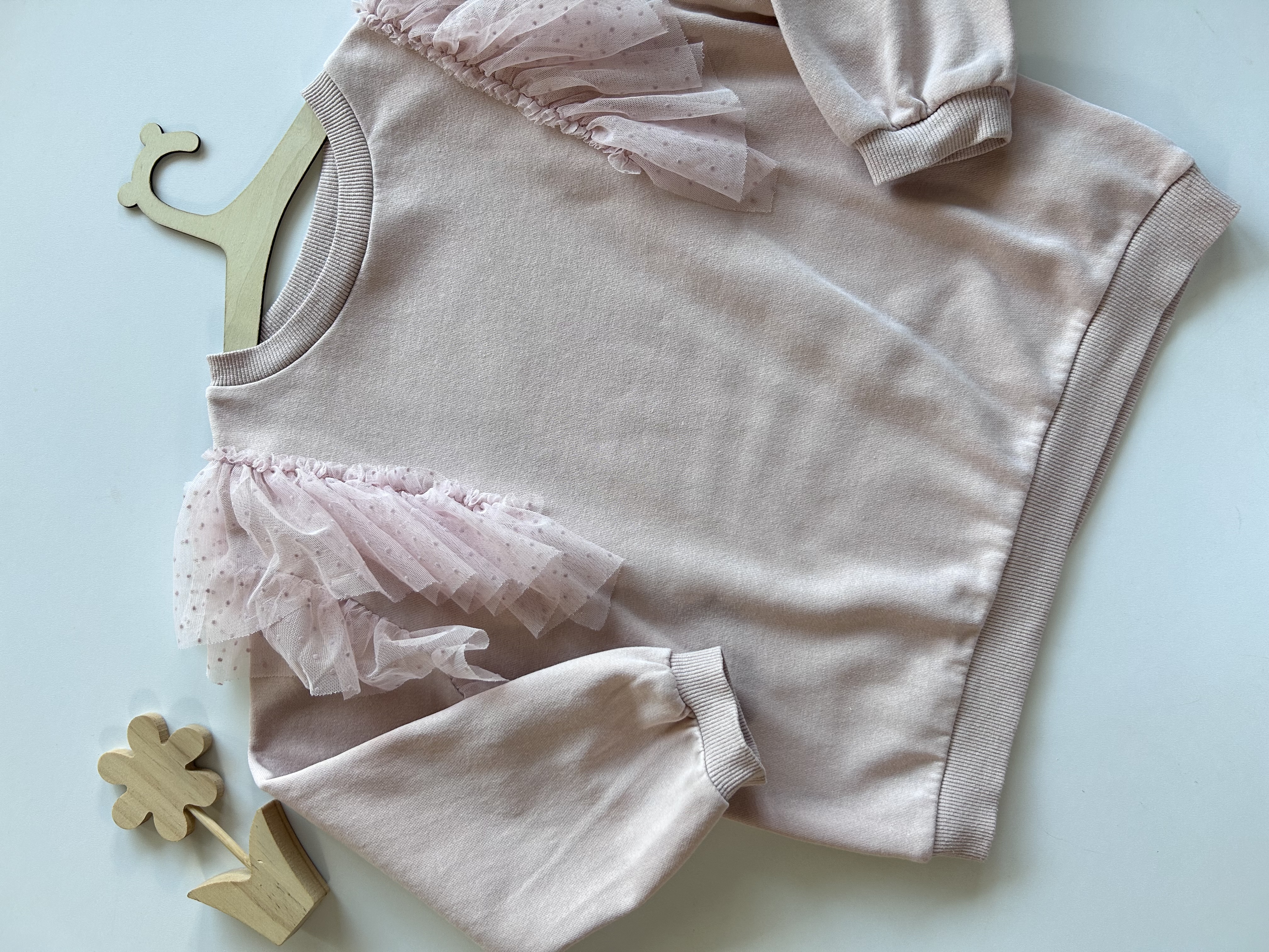 Bluza z tiulowymi falbankami. H&M, odzież używana.