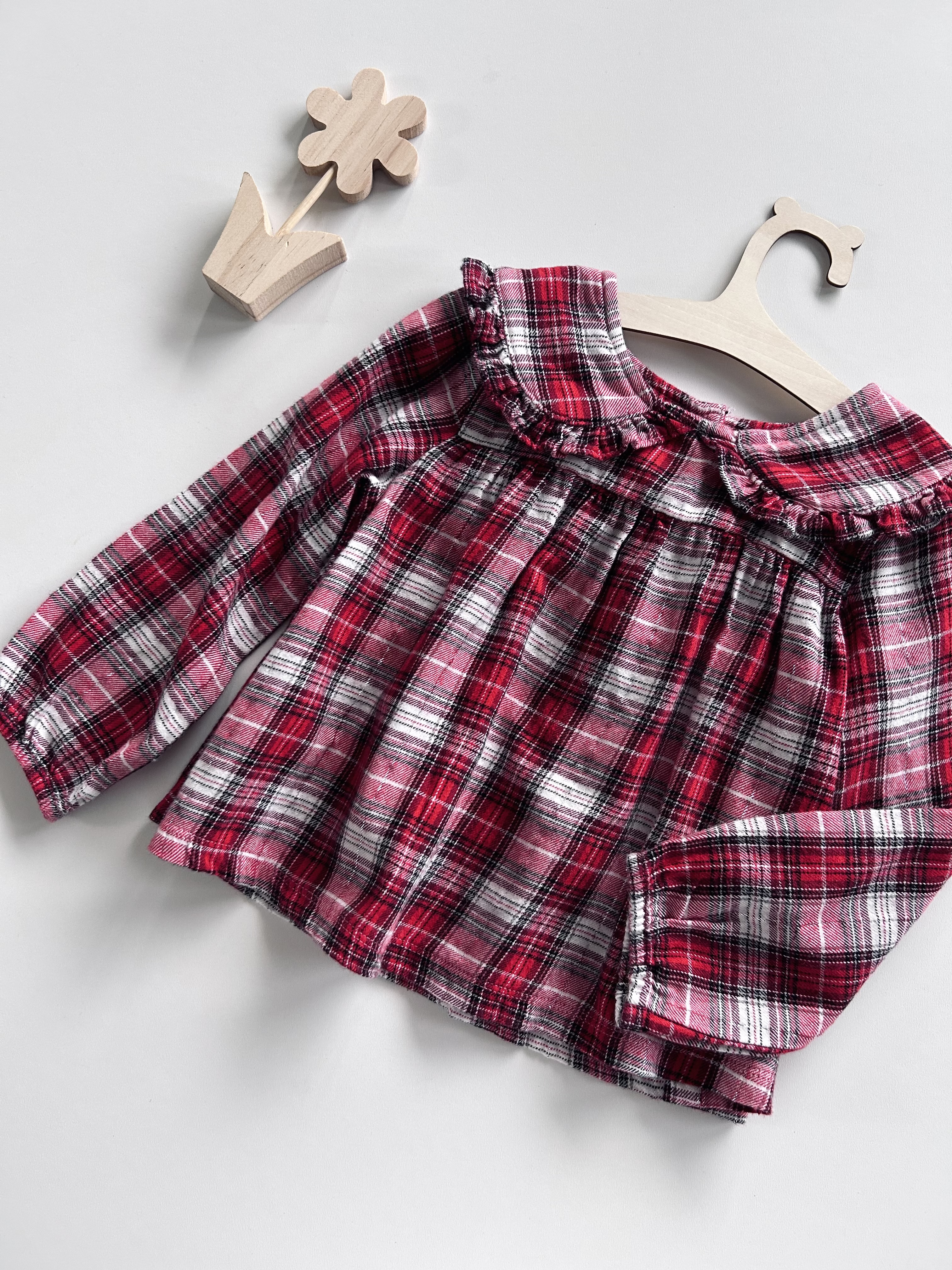 Bawełniana bluzeczka koszulowa z kołnierzykiem. Srebrna nitka. Girls wear, odzież używana.