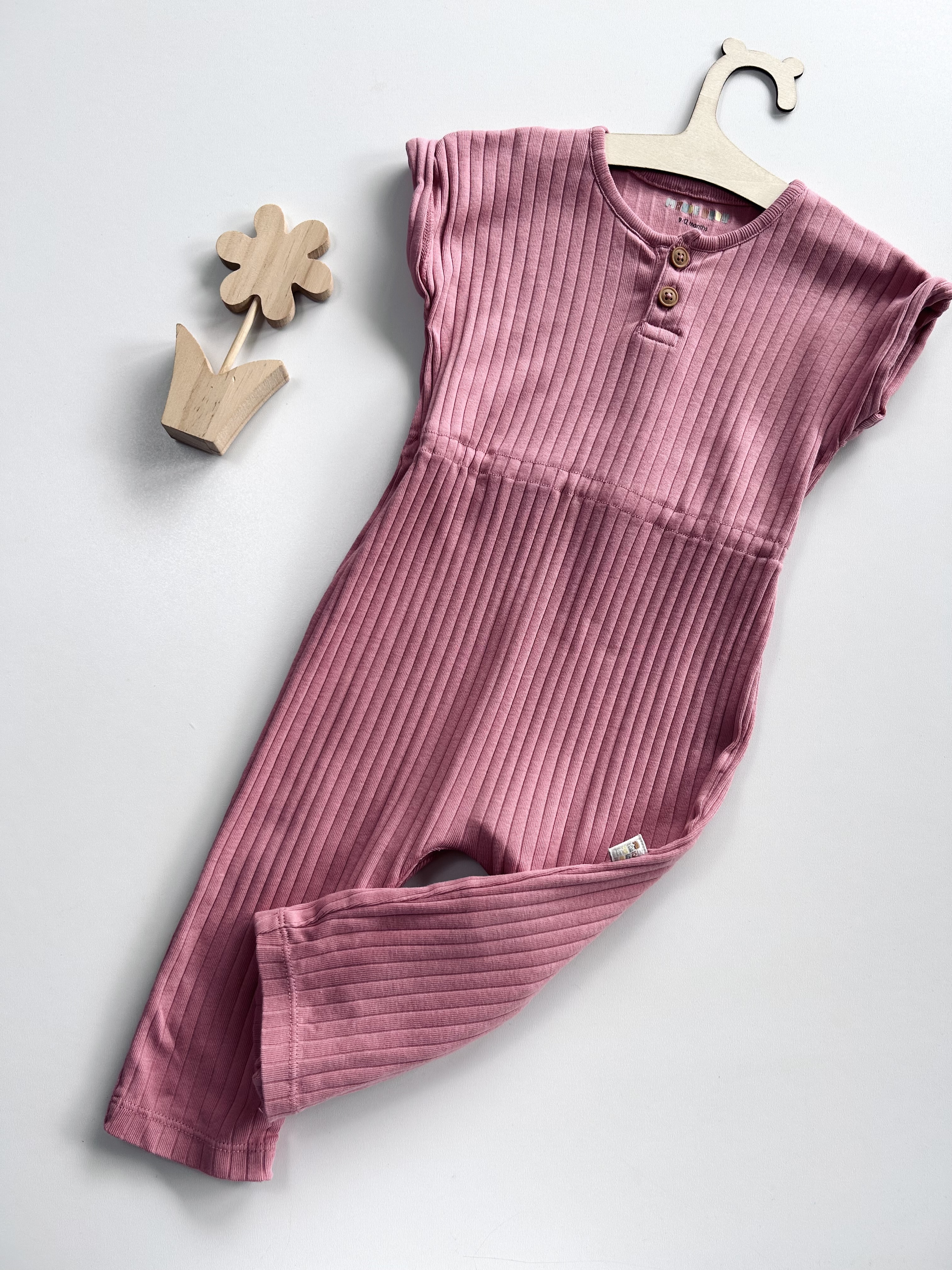Bawełniany kombinezon, prążek. Zatrzaski w kroczku. Maybe Baby, odzież używana.