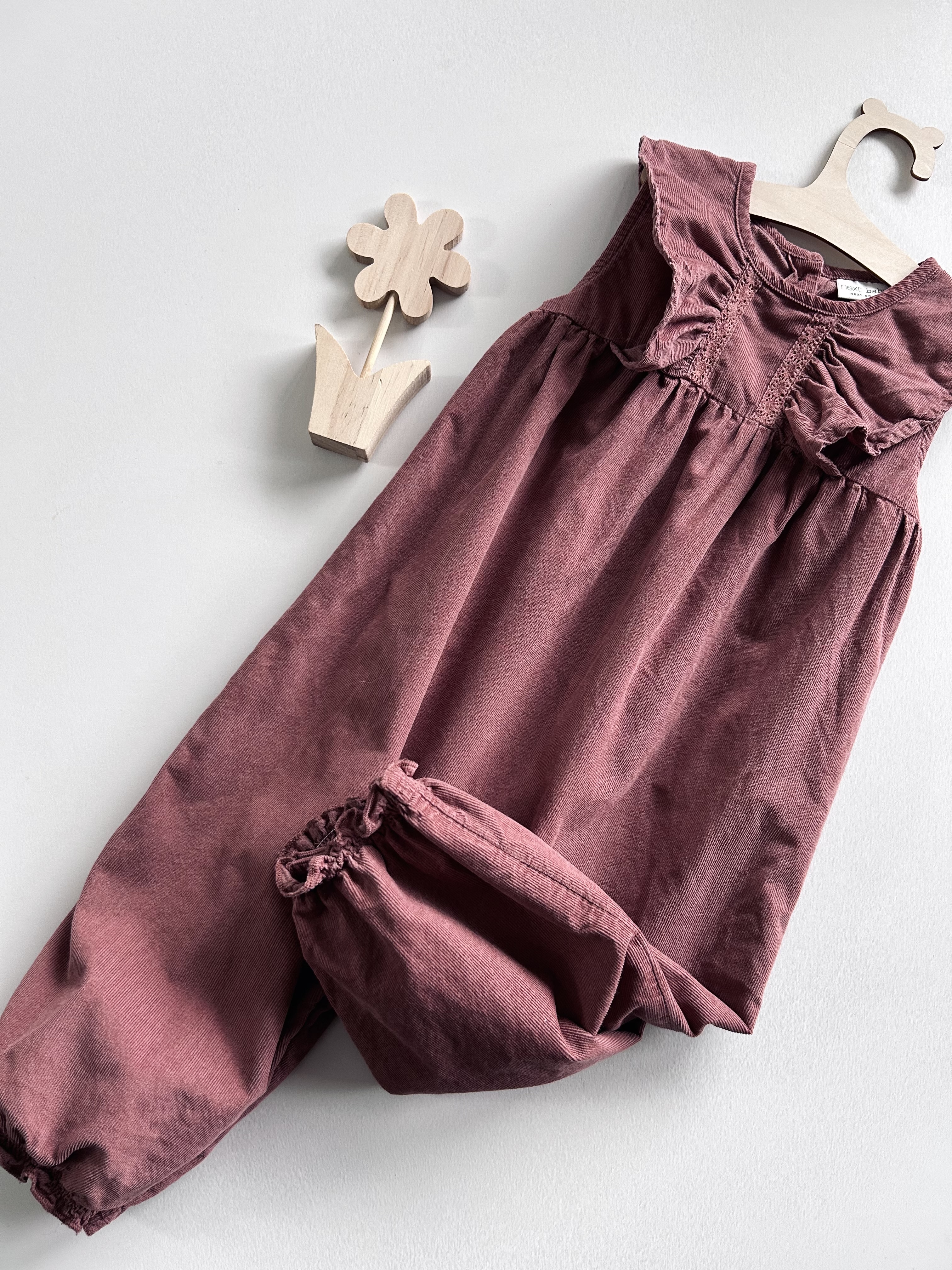 Bawełniany kombinezon, zatrzaski w kroczku, miękki sztruks. Next, odzież używana.