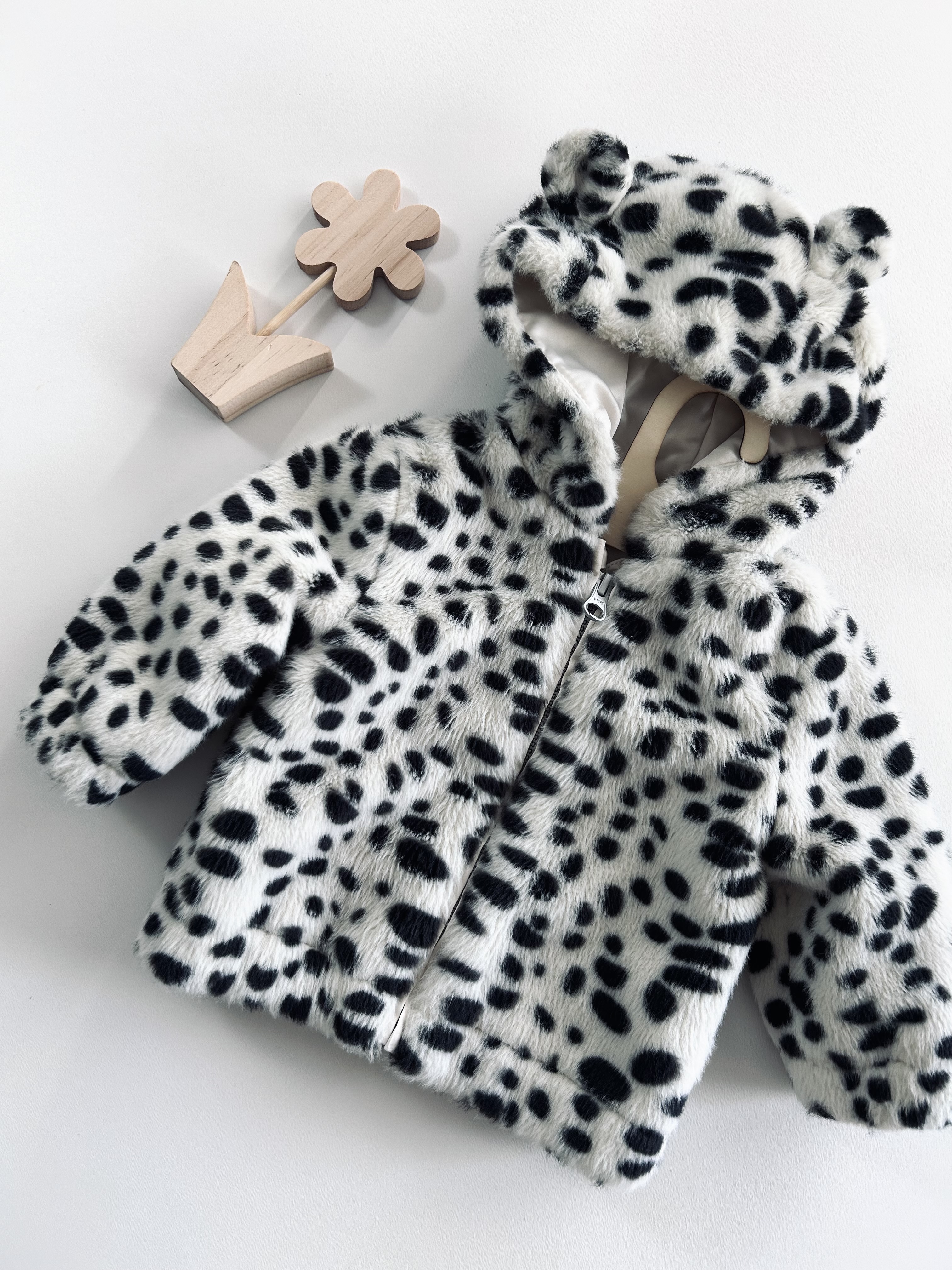 Kurteczka z kapturem (ozdobne uszka) na atłasowej podszewce. Nutmeg, odzież używana.