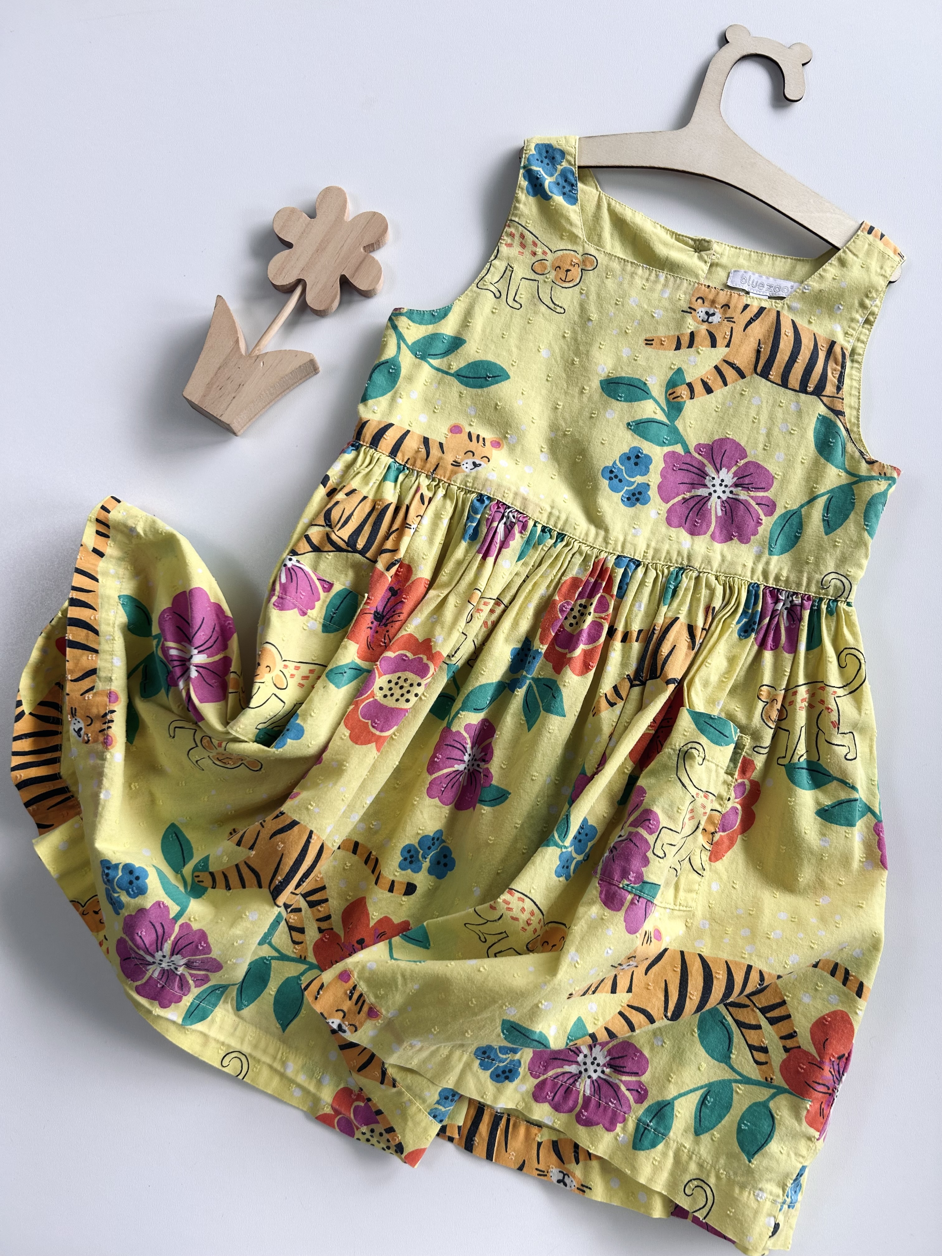 Bawełniana sukienka z kieszonkami, tył zapinany na cztery guziczki. Bluezoo, odzież używana.