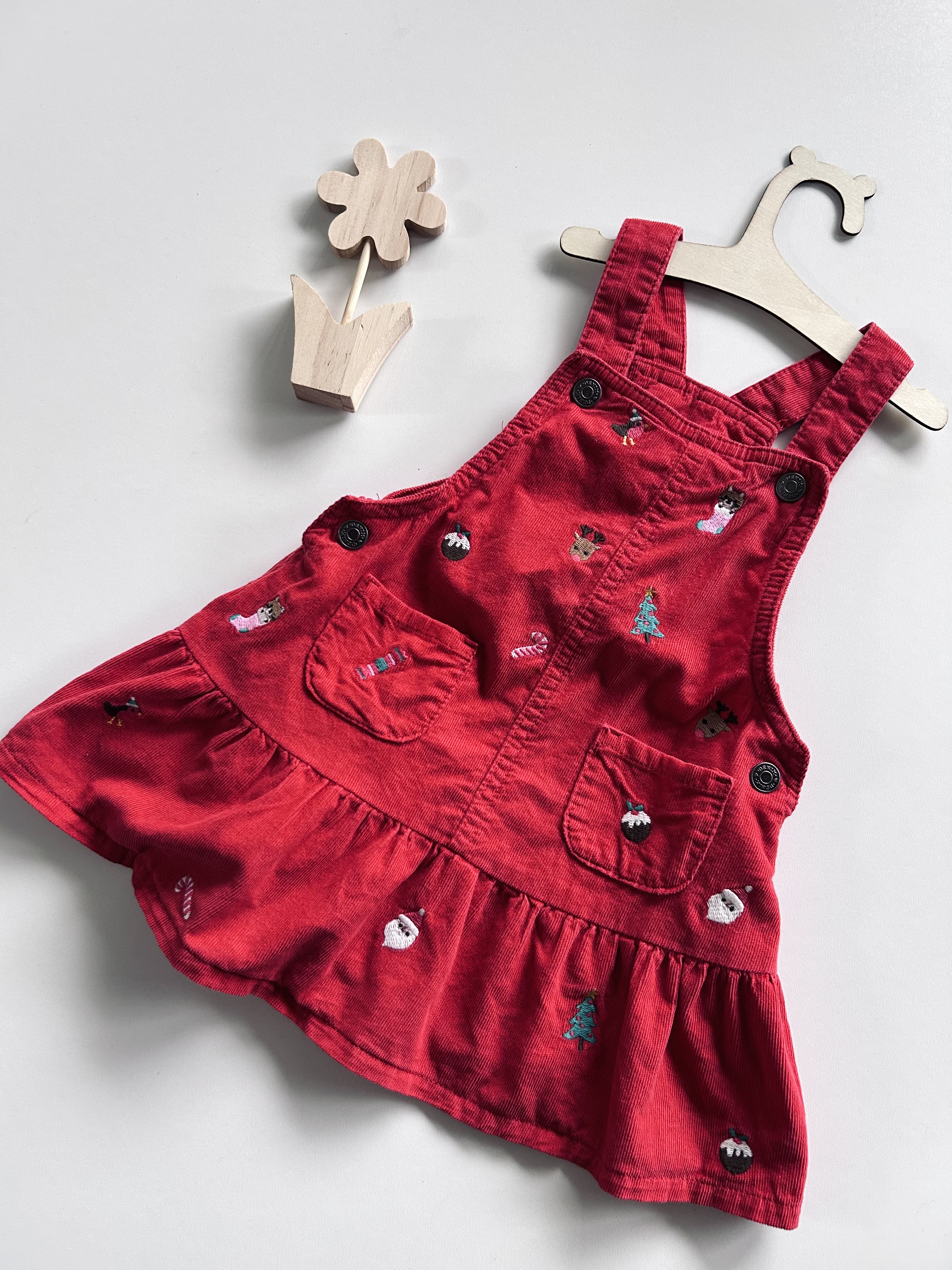 Sukienka bawełniana, print świąteczny (haftowany), miękki sztruks. Tu, odzież używana.