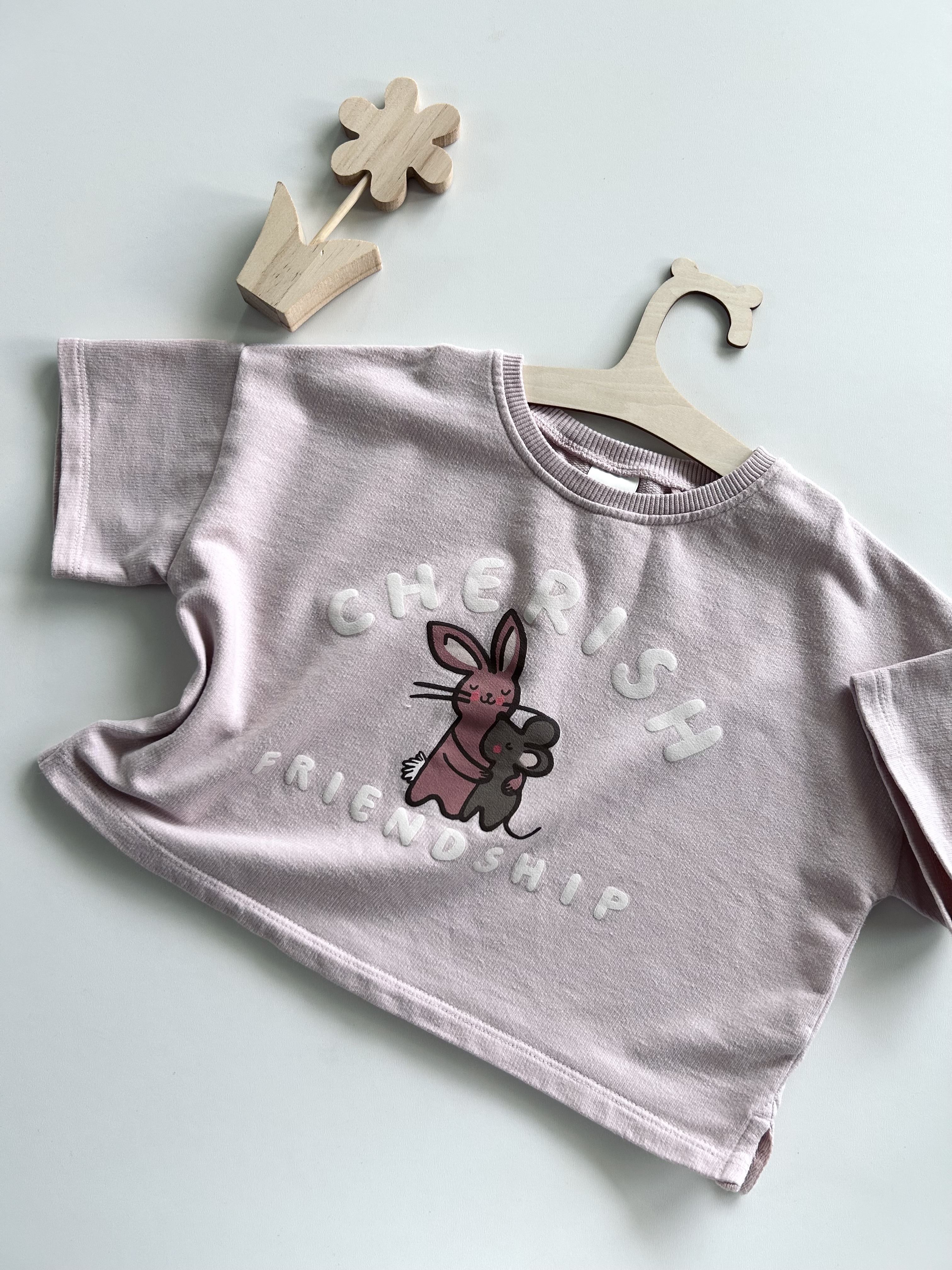 Krótszy t-shirt/ bluzka, grubsza porządna bawełna. Krój oversize. Next, odzież używana.