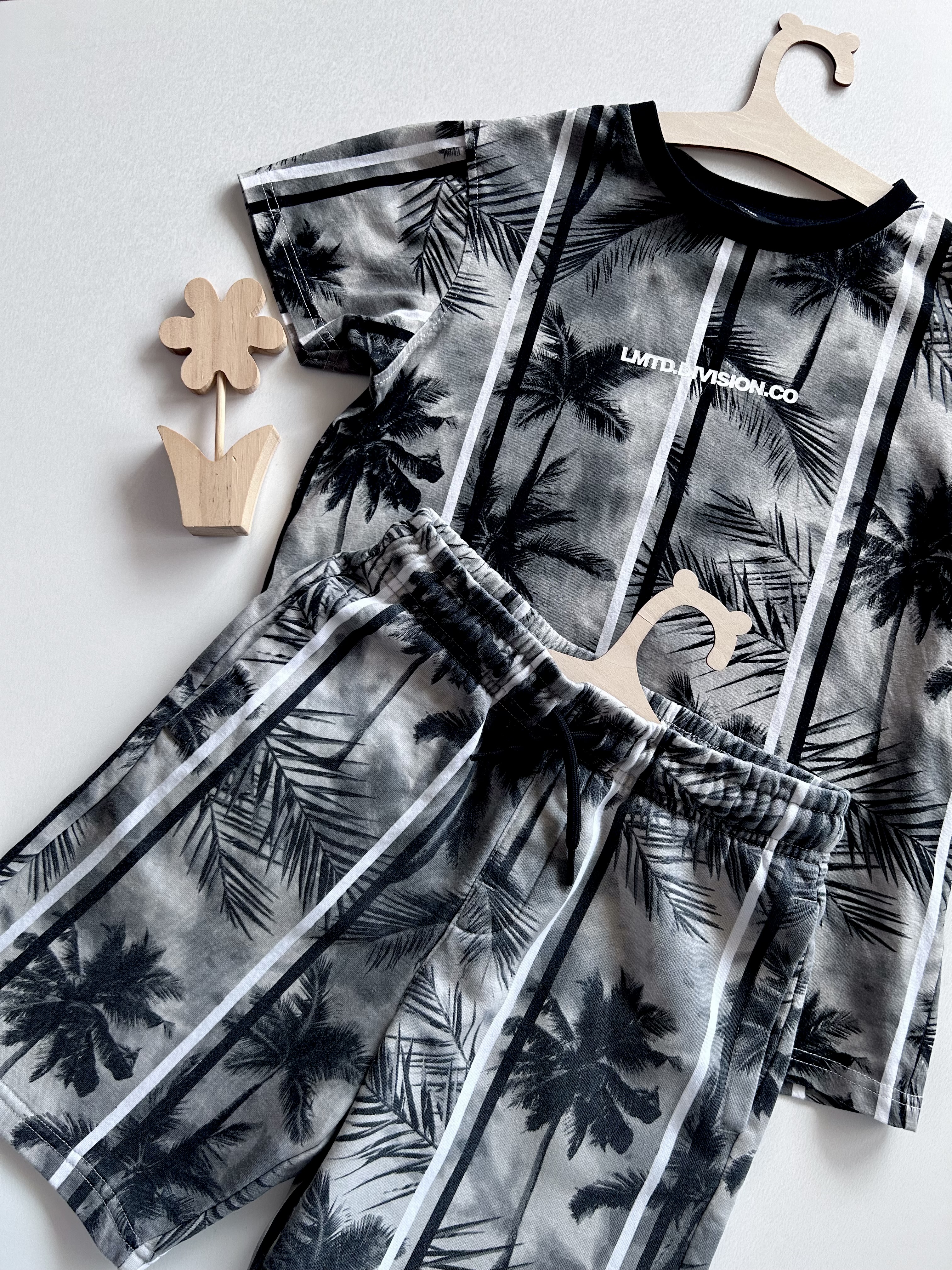 Komplet, t-shirt i spodenki (regulacja sznureczkiem w pasie), 80% bawełna. George, odzież używana.